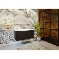 ALLIBERT Meuble Lave-mains JAVA PACK Noyer + Vasque Noire 40,2 X 48,6 X 25,1 Cm – Noyer