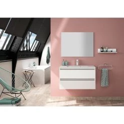 ALLIBERT Meuble De Salle De Bain PESARO Blanc 2 Tiroirs 80 Cm + Plan Vasque SLIDE – Blanc Alpin