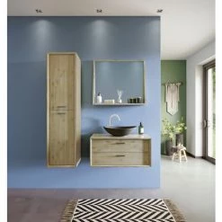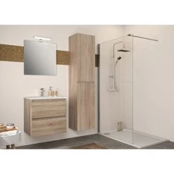 ALLIBERT Ensemble Meuble De Salle De Bain MARNY Chêne 2 Tiroirs 80 Cm + Plan Pour Vasque à Poser