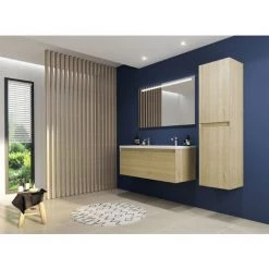 ALLIBERT Ensemble Meuble De Salle De Bain MARNY Chêne 2 Tiroirs 120cm + Plan Pour Vasque à Poser