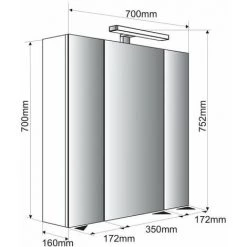 Allibert – Armoire de toilette Ă©clairante 70 cm 3 portes miroirs Blanc brillant prise UTE – JUNO