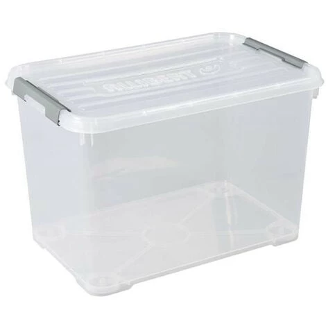 ALLIBERT BoĂ®te de rangement Handy Plus – Avec clips gris et couvercle transparent – CapacitĂ© : 65 L.