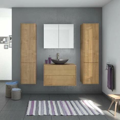 Meuble à suspendre livré monté. Robinetterie, bonde et siphon non-inclus