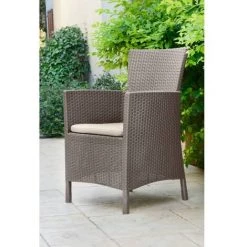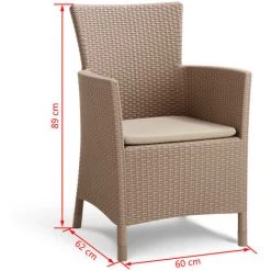 Les chaises ont des accoudoirs confortables et un dossier de forme ergonomique pour un grand confort d’assise. Un oreiller assorti est inclus. La table incluse a des cĂ´tĂ©s en rotin et un dessus de table en lattes et dispose d’un compartiment de rangement cachĂ© sous le dessus de table. Cet ensemble de jardin confortable est fabriquĂ© en plastique rĂ©sistant Ă l’usure, aux intempĂ©ries et sans entretien. Ainsi, il durera des annĂ©es sans s’user ni rouiller.