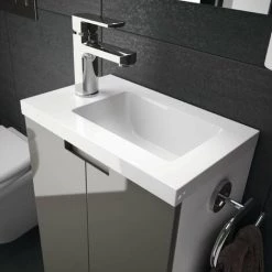 Un lave-main moderne et fonctionnel avec dĂ©rouleur papier-toilette et porte-serviette intĂ©grĂ©s.Â